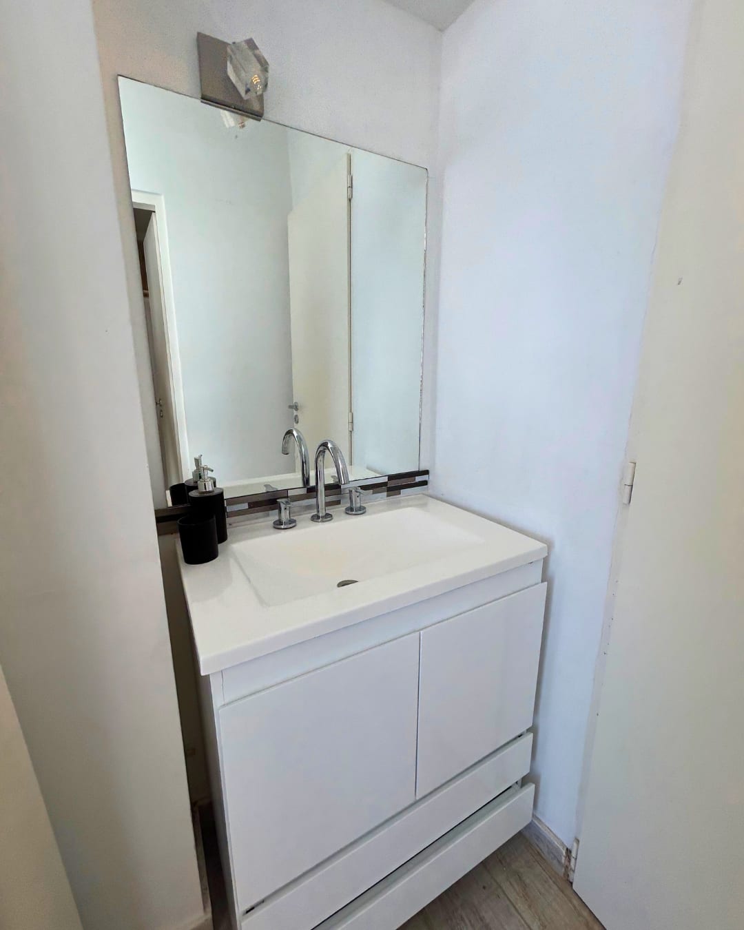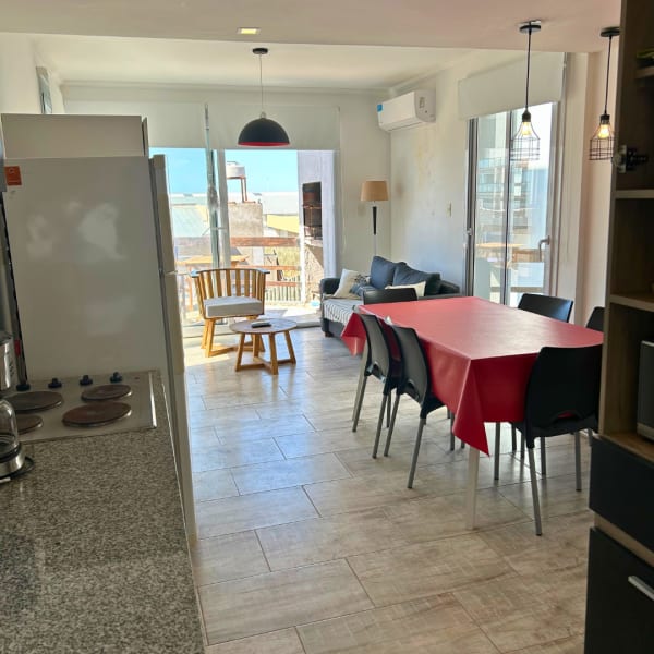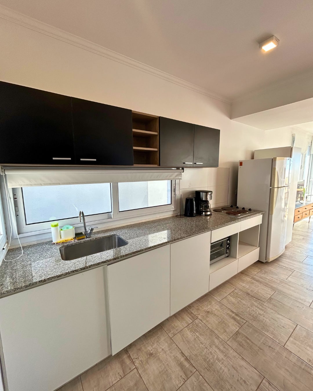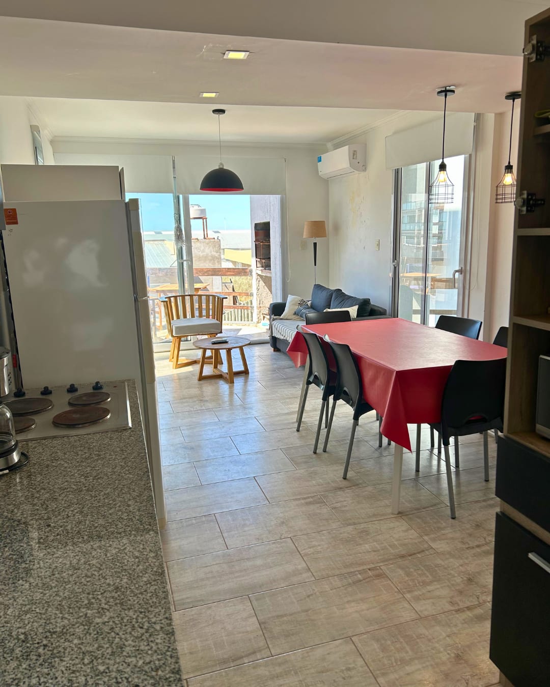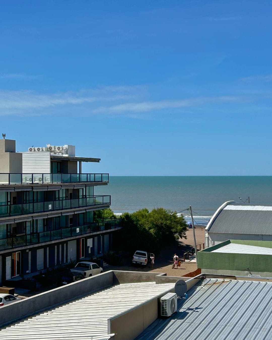 Cuenta con balcón equipado con parrilla, ideal para encuentros al aire libre, y cochera semicubierta. Living comedor amplio con salida a segundo balcón lateral, cómodo y bien proporcionado, con vista al mar no directa que aporta luz natural y agradable sensación de apertura. Cocina amplia equipada con amoblamientos cómodos y funcionales, con conexión para lavarropas, pensada para uso práctico permanente o vacacional.